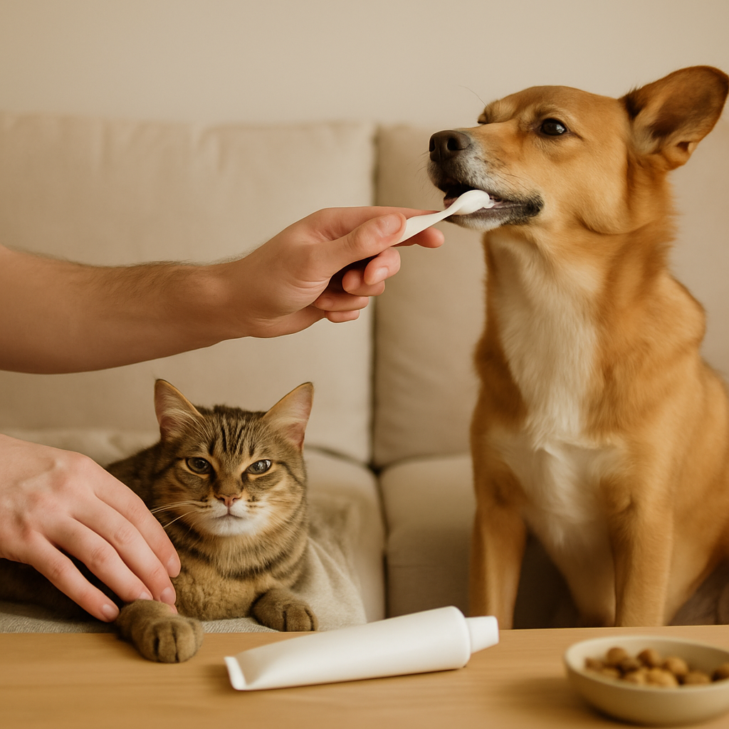 Erfahre einfache, stressfreie Zahnpflege für Hunde & Katzen: die richtige Bürste, sanftes Training, Warnsignale und Ernährung – jetzt auf unserer Tierpflege-Seite lesen.